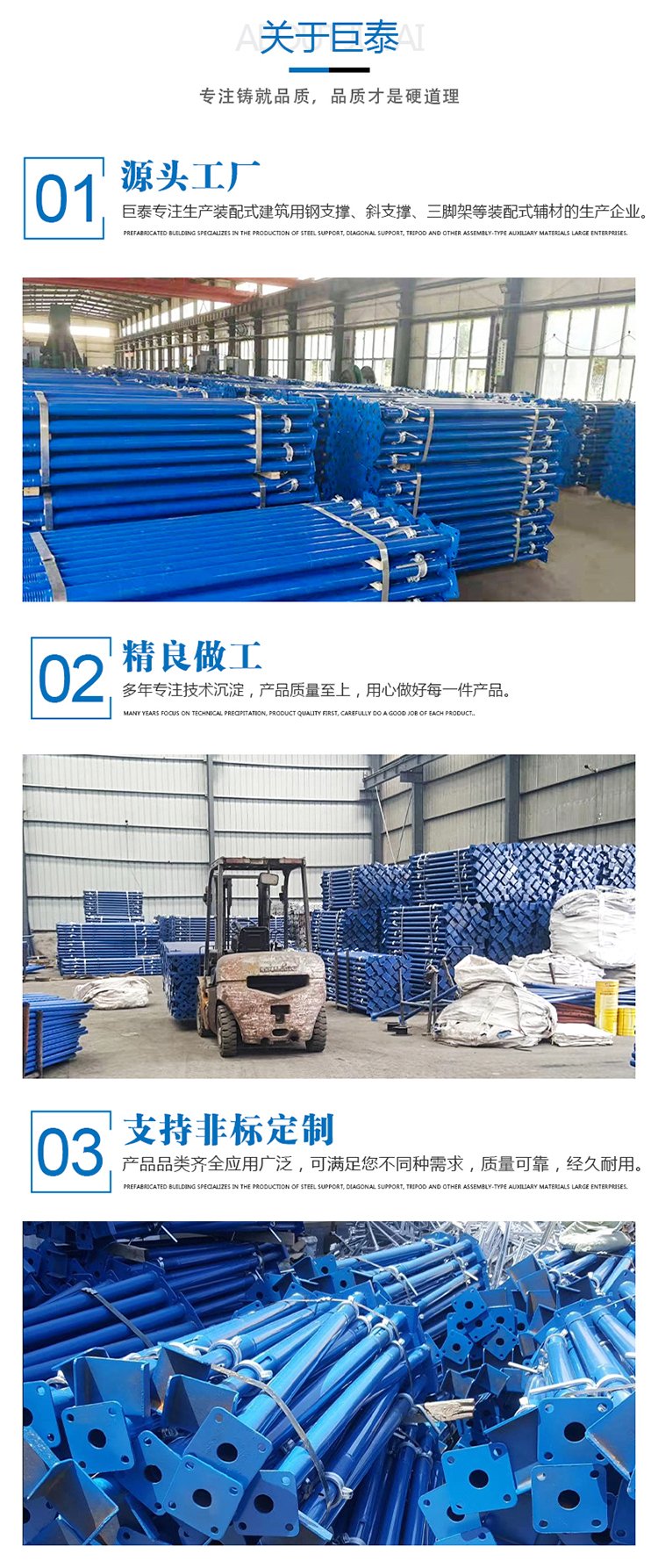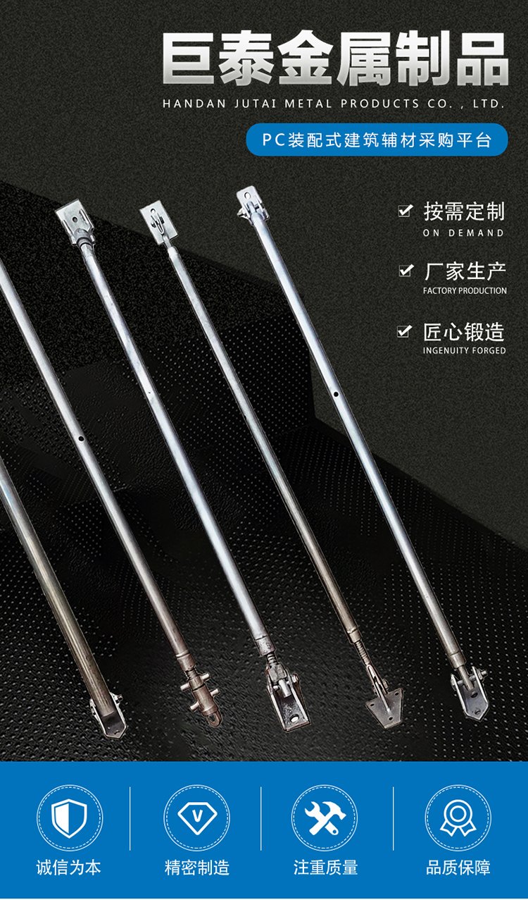 邯鄲市巨泰金屬制品有限公司是一家專注生產(chǎn)主要生產(chǎn)裝配式鋼支撐,PC斜支撐、三角架,斜支撐配件、建筑配件等pc裝配式輔材產(chǎn)品。